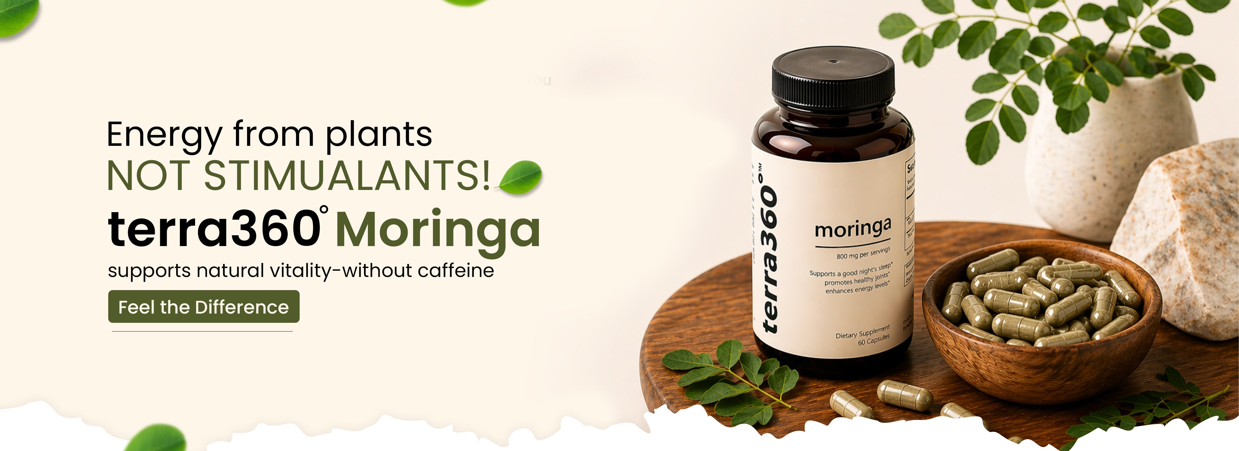 terra360° Moringa capsules are made from high-quality moringa leaf, a naturally nutrient-rich plant known for its vitamins, minerals, and plant compounds. Our formula focuses on whole-plant nutrition without unnecessary additives.